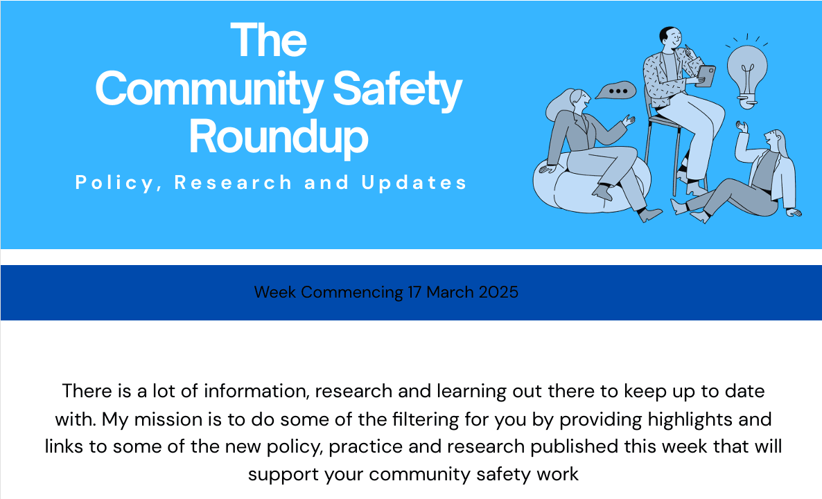 There is a lot of information, research and learning relating to community safety out there to keep up to date with. To support your work, I've done some of the filtering for you by providing highlights and links to some of the new policy, practice and research published this week.