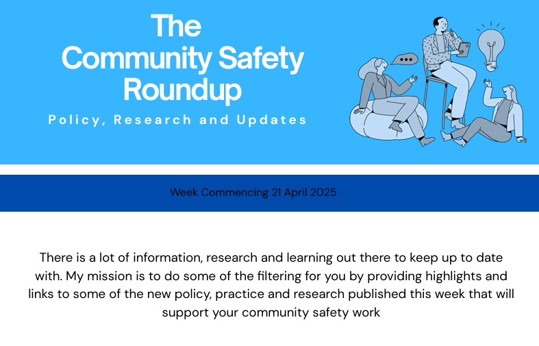 There is a lot of information, research and learning relating to community safety out there to keep up to date with. To support your work, I've done some of the filtering for you by providing highlights and links to some of the new policy, practice and research published this week.