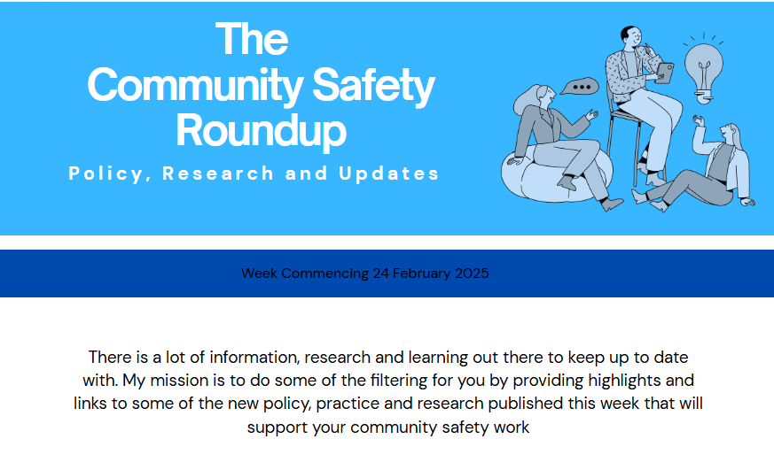 There is a lot of information, research and learning relating to community safety out there to keep up to date with. To support your work, I've done some of the filtering for you by providing highlights and links to some of the new policy, practice and research published this week.