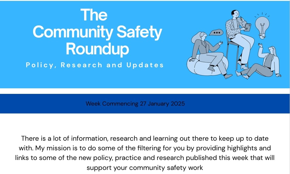 There is a lot of information, research and learning relating to community safety out there to keep up to date with. To support your work, I've done some of the filtering for you by providing highlights and links to some of the new policy, practice and research published this week.