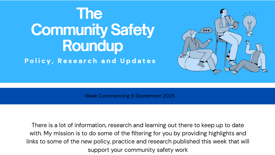 There is a lot of information, research and learning relating to community safety out there to keep up to date with. To support your work, I've done some of the filtering for you by providing highlights and links to some of the new policy, practice and research published this week.