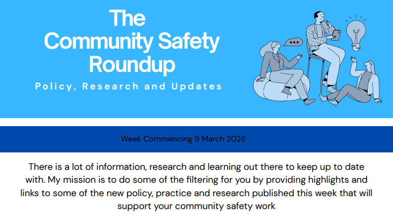 There is a lot of information, research and learning relating to community safety out there to keep up to date with. To support your work, I've done some of the filtering for you by providing highlights and links to some of the new policy, practice and research published this week.